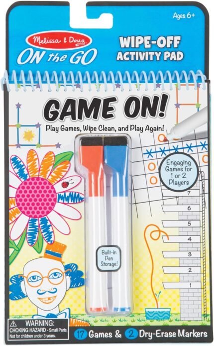 Melissa & Doug On the Go Game On! Reusable Games Wipe-Off Activity Pad Reusable Travel Toy with 2 Dry-Erase Markers – FSC Certified