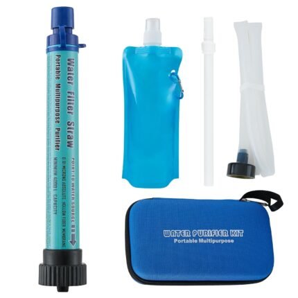 Water Filter Straw Kit Outdoor Portable Personal Water Filter Straw Water Purifier Survival Gear and Equipment for Hiking Camping Travel and Emergency Blue