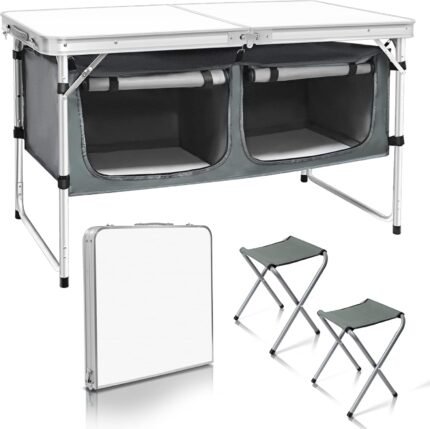 CampLand Outdoor Folding Table Aluminum Lightweight Height Adjustable with Storage Organizer for BBQ, Party, Camping