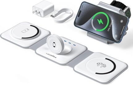 UCOMX 3 in 1 Charging Station for Multple Devices,Foldable 3 in 1 Wireless Charger for Travel,Nano Wireless Charging Station for iPhone16 15 14 13 12 Pro Max/Watch 10 9 8 7 6 5 4 3 Ultra/AirPod Pro