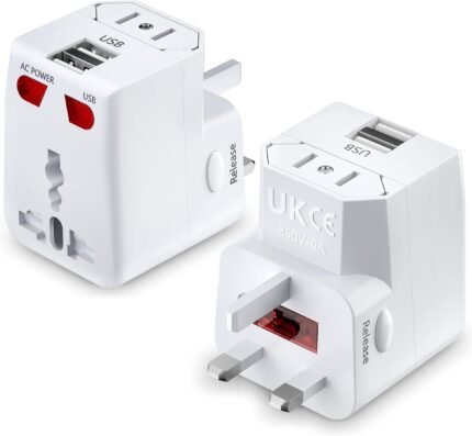 Universal Travel Adapter with Fast Charge,Worldwide Travel Plug Adapter with 2 USB Port and AC Socket (Travel Adapter White)