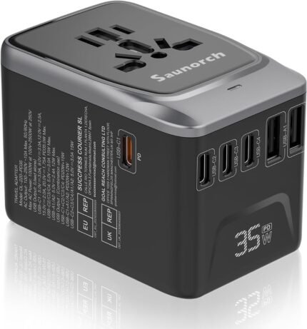 Price: (as of – Details) From the brand SAUNORCH Travel adapter Compact charger for work, school & adventures. Rapidly powers