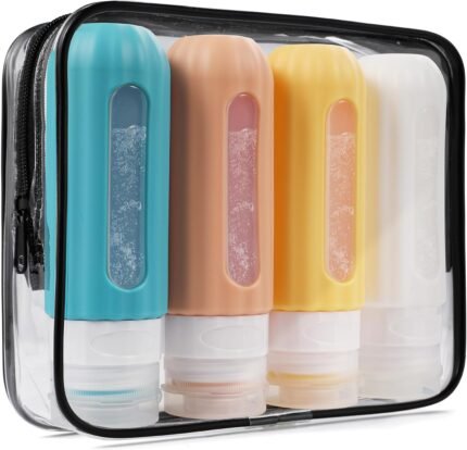 Reusable Silicone Travel Bottles – TSA Approved, Leak Proof, Refillable Containers for Shampoo, Conditioner, 3 oz