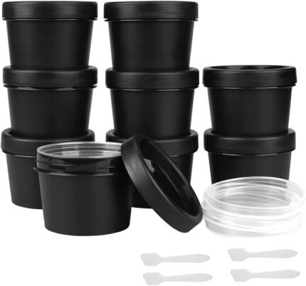 Travel Containers for Toiletries 3.4oz 9 Pack TSA Approved Plastic Cream Jars Wide-mouth Cosmetic Pot Jars with Lids Leak Proof Travel Size Containers for Makeup Face Cream(Black)