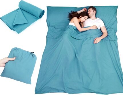 Sleeping Bag Liner Camping Sleeping Bag Liners, Portable Double Sleeping Bag Liner, Travel and Camping Sheet Sleeping Bag Liner with Pillow Pocket for Hostels, Backpacking