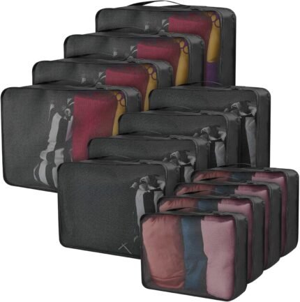 Silkfly 12 Pcs Packing Cubes for Suitcase Travel Luggage Bags Bulk Mesh Organizer Set for Hiking Camping Backpacking Clothes Accessories (Black,XL, L, M Size)