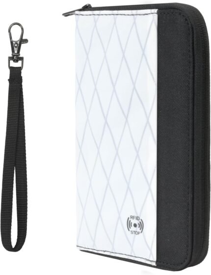 Travel Passport Wallet – RFID Blocking Passport Holder Travel Document Organizer with Wrist Strap Lightweight Single Card Pouch Portable Credit Card Case for Women & Men (White)