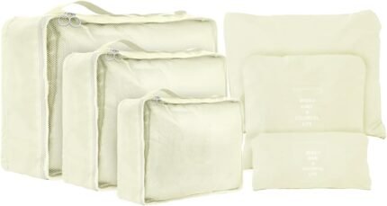 Travel Packing Cubes 6 Set, Lightweight Luggage Organizers, Essential Accessories for Clothes Shoes Electronics Cosmetics Toiletries(Off White)