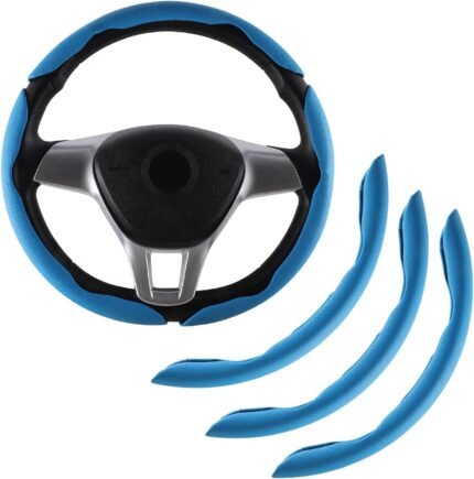 Amiss Car Nappa Leather Steering Wheel Cover, Car Interior Accessories, 3PCS Segmented Steering Wheel Protector, Universal 99% Car Wheel Cover Protector (Blue)