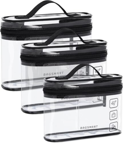 BAGSMART TSA Approved Toiletry Bag, 3 Pack Clear Makeup Cosmetic Bag Organizer, Quart Size Travel Bag for Toiletries, Carry-on Travel Accessories Essentials, Black-3pcs