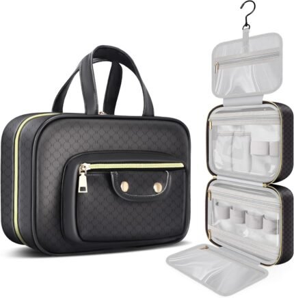 BOOMRICH Travel Toiletry Bag, Hanging Travel Makeup Bag for women with Hanging Hook, Water-resistant Cosmetic Bag Organizer for Full Sized Toiletries, Accessories, Shampoo (Black)
