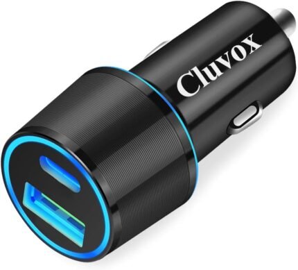 Dual USB Car Charger Adapter, Cluvox 20W Fast Charge Car Charger for iPhone 16/15 Pro Max/Plus/14/13/12/11/XS/XR/X/8/SE 2020/iPad 8th/Pro/Air 4/Mini, Google, Samsung Cigarette USB Adapter