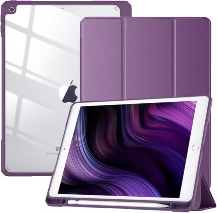 TiMOVO Case for iPad 9th Generation 2021/iPad 8th Generation 2020/iPad 7th Generation 2019 10.2 inch with Pencil Holder, Slim Protective Cover with Clear Back Shell, Auto Wake/Sleep, Dark Purple