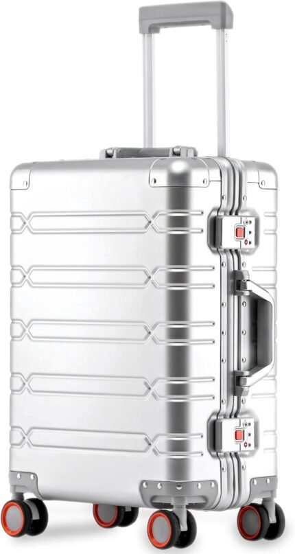 All Aluminum Carry On Luggage 22x14x9 Airline Approved,Zipperless Luggage Premium Aluminum Suitcase Luggage, Hard Shell Carry On Luggage with Spinner Wheels (silver, 20inch)