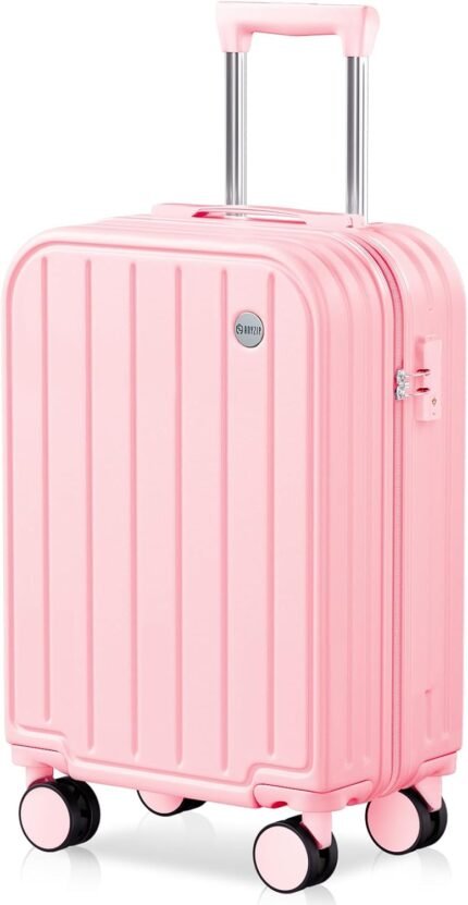 AnyZip Carry On Luggage 22x14x9 Airline Approved TSA Lock Lightweight Suitcase, 20 Inch PC ABS Hard Shell Luggage with Wheels for Women and Kids (Pink)