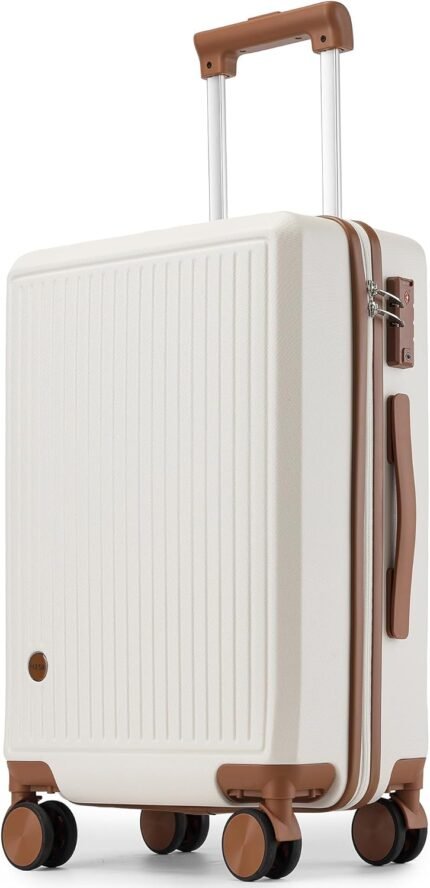 Hanke 20 Inch Carry On Luggage 22x14x9 Airline Approved Lightweight PC Hard Shell Suitcases with Wheels Travel Luggage Rolling Suitcase Travel Luggage Bag Christmas Gifts for Birthday(Ivory White)