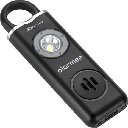 3DActive Alarmee Rechargeable Personal Safety Alarm for Women, Teens & Elderly, Pocket Size 130dB Loud Siren with LED Light (Black)