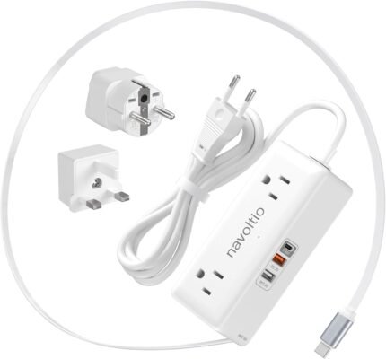European Travel Plug Adapter, US to EU/UK Plug Adapter (PD 20W) Retractable USB C Cable with 4 AC Outlets 3 USB Fast Charge, 3FT Type C/E/F/G Adapter for UK Ireland Turkey France Italy Spain
