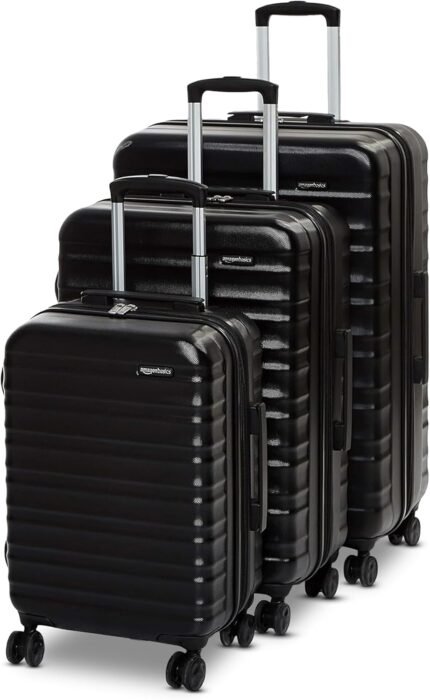 Amazon Basics 3-Piece Luggage Set, Including One Carry-On Luggage (22″ Expandable Hardside Suitcase With 8 Spinner Wheels), One 15-inch Tote Bag, and One 10-inch Compact Travel Bag, Black