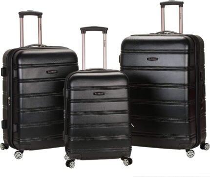 Rockland Melbourne Hardside Expandable Luggage with Spinner Wheels, Black, 3-Piece Set (20/24/28)