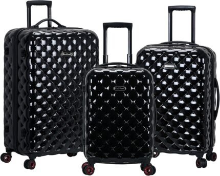 Rockland Quilt Hardside Expandable Spinner Wheel Luggage, Black, 3-Piece Set (20/24/28)