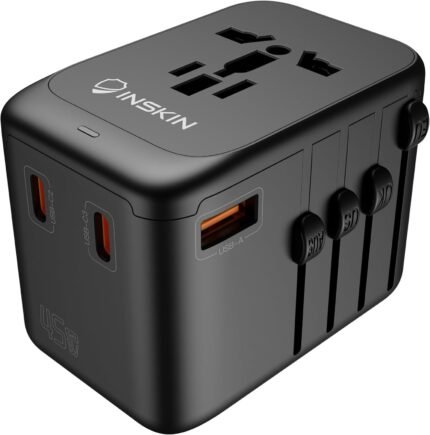 Inskin Universal Travel Adapter Worldwide, 45W GaN III International Power Adapter w/4 PD Ports (3 USB-C, 1 USB-A) – USA, Japan, Australia, European Travel Plug Adapter (Type C/A/B/G/I)
