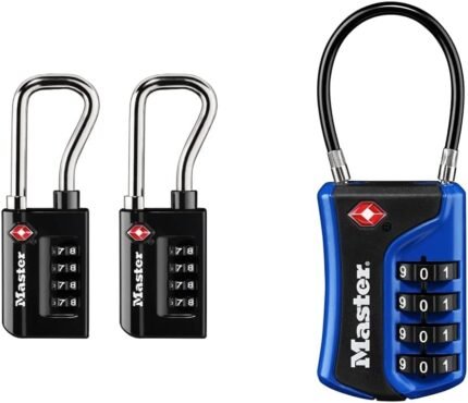 Master Lock 4696T, Pack of 2 Set Your Own Combination TSA Approved Luggage Lock, 2 Pack, Black & 4697D Set Your Own Combination TSA Approved Luggage Lock, 1 Pack, Colors May Vary