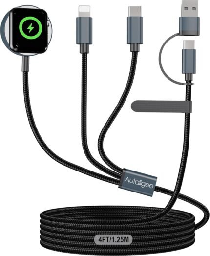 Upgraded 3 in 2 Multi Charging Cable for Apple Watch Charger iWatch Travel Essentials Multi Fast Charging Cable Compatible with iWatch Ultra/SE/10/9/8/7/6/5/4/3/2/1,iPhone16/15/14/13/Galaxy S24 [4FT]