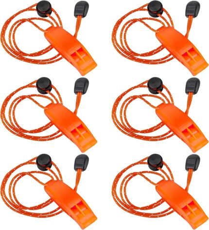6Pcs Emergency Whistles Survival Whistles Marine Safety Whistle with Adjustable Reflective Lanyard, Super Loud Floating Whistles for Emergency