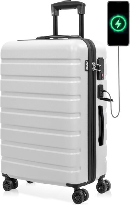 AnyZip Suitcase Hardside PC ABS Lightweight USB Luggage with Wheels TSA Lock Checked-Medium 24 Inch White