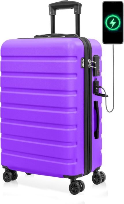 AnyZip Suitcase Hardside PC ABS Lightweight USB Luggage with Wheels TSA Lock Checked-Medium 24 Inch Violet Purple