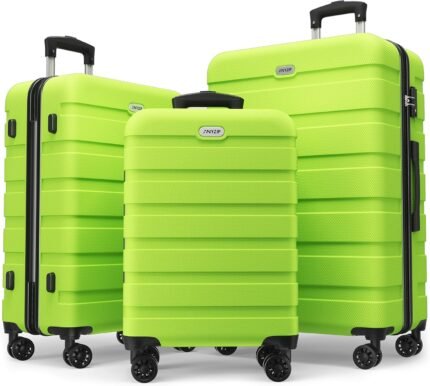 AnyZip Luggage Sets 3 Piece PC ABS Hardside Lightweight Suitcase with 4 Universal Wheels TSA Lock Carry On 20 24 28 Inch Apple Green