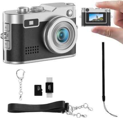 Mini Keychain Camera – 1080P FHD Mini Retro Digital Camera – Tiny Portable Small Cameras Vintage Compact Micro Cameras – Pocket Video Recorder with 16GB Card, OTG Adapters for Travel Study Recording