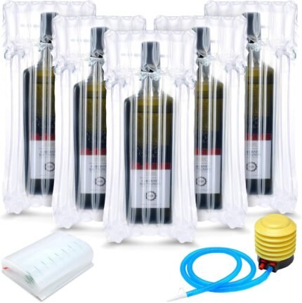 150 Pcs Wine Bottle Protector Bags for Travel Inflatable Air Column Wine Shipping Sleeves Cushion with Reusable Pump Bag for Travel, Safety Shipping
