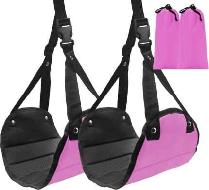 2 Pack Airplane Foot Hammock Travel Footrest – Long Flight Must Haves – Foot Rest for Air Travel,Essentials for Travel & Home (Pink)