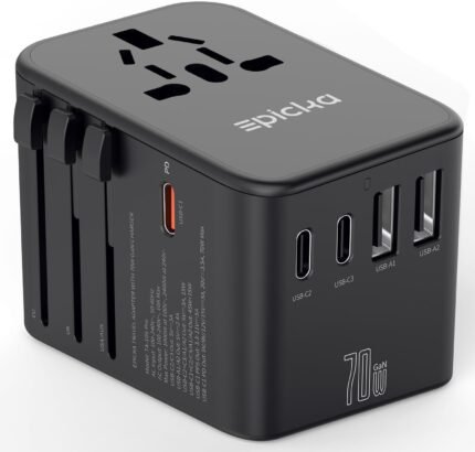 EPICKA Universal Travel Adapter, GaN International Plug Adapter with 3 USB-C 70W PD Fast Charging & 2 USB-A Adaptor All-in-one Wall Charger for USA EU UK AUS (TA-105 Pro, Black)