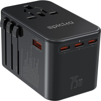 EPICKA Universal Travel Adapter, GaN 75W International Plug Adapter with 3 USB-C PD Fast Charging & 2 USB-A Quick Charging Adaptor All-in-one Wall Charger for USA EU UK AUS (TA-105 Max, Black)