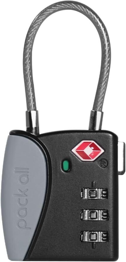 pack all TSA Approved Cable Luggage Locks, 3 Digit Combination Padlocks, Travel Lock for Suitcases & Bag, Alloy Body, Travel Accessories (1 Pack) (Grey)