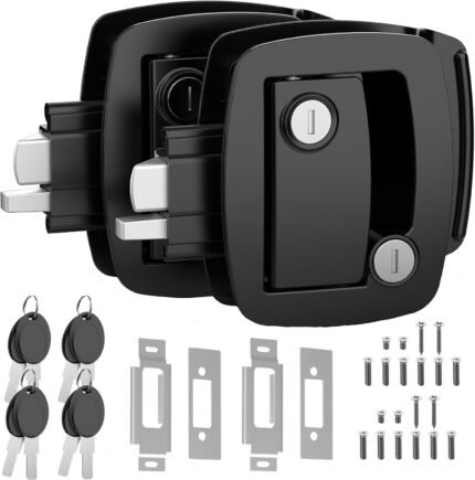 PAULINN Heavy Duty RV Door Lock Replacement – Black Zinc Alloy Paddle Deadbolt Lock, IP67 Waterproof Camper Door Lock with 4 Keys for Horse Trailer, Cargo Hauler, Travel Trailer & Motorhome(2 Pack)