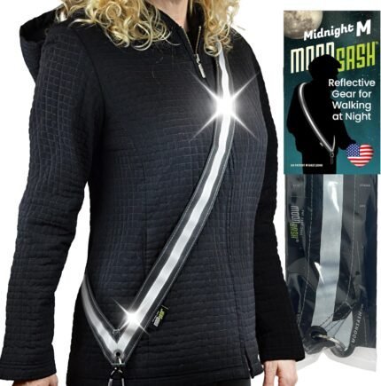 MOONSASH Reflective Sash for Walking at Night | USA-Made | Fitted, Reversible + Patented Night Walking Safety Gear | Perfect Belt/Reflective Vest for Women & Men Alternative | Essential Running Gear