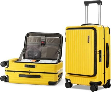 Carry On Luggage with Spinner Wheels, 20 Inch Airline Approved Suitcase, Lightweight ABS+PC Hard Shell Suitcases with Aluminum Frame, Top Opening, TSA Lock (Yellow, 1 PC)