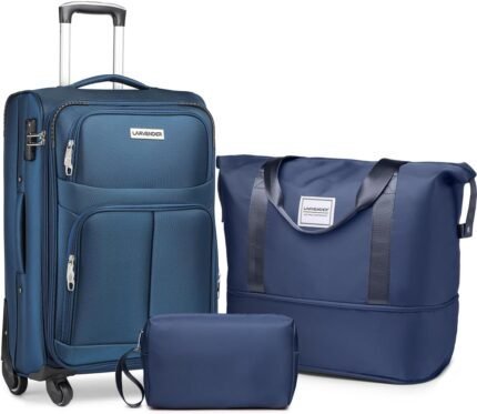LARVENDER Softside Carry On Luggage 3 Piece, Expandable Carry On Luggage 22x14x9 Airline Approved 20-inch Carry on Suitcase with Spinner Wheels for Men Women, TSA Lock, Blue (20/BP/TB)