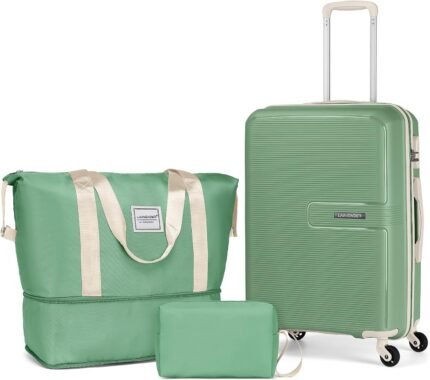 LARVENDER Luggage Sets 3 Piece, Hardside 20 IN Carry on Luggage Airline Approved Suitcase Sets with Spinner Wheels, Lightweight Rolling Suitcase for Men and Women, Green
