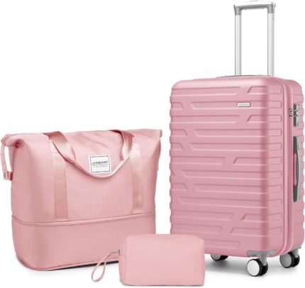 LARVENDER Luggage Sets 3 Piece, Hardside 20 Inch Carry on Luggage Airline Approved Suitcase Set with Spinner Wheels TSA Lock, Lightweight Rolling Suitcase for Men and Women, Pink