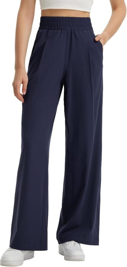BALEAF Women’s Wide Leg Pants Lightweight Athletic Track Pants with Pockets 30″ Travel Work Lounge Loose Fit UPF50+