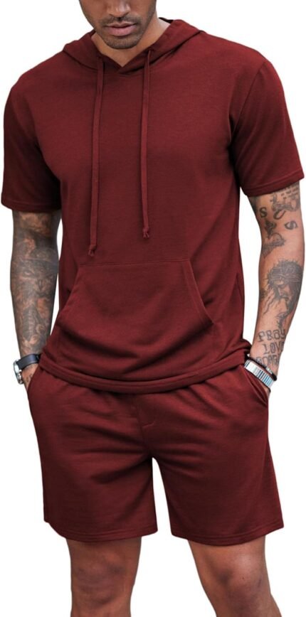 COOFANDY Men’s Tracksuit 2 Piece Hooded Athletic Sweatsuit Short Sleeve Casual Sports Hoodie Shorts Set