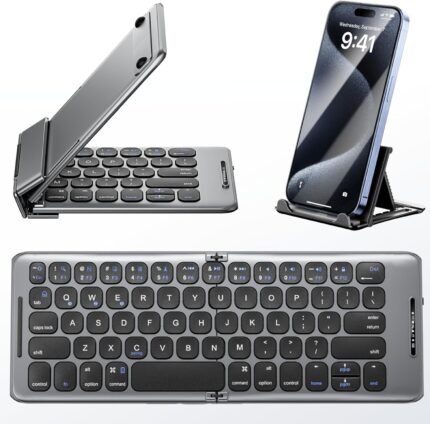 Foldable Bluetooth Keyboard with Stand Holder, Rechargeable Pocket Size Folding Travel Keyboard for iPhone, iPad, Tablet, Laptop, Smartphone, B088