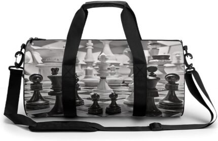 Sport Gym Duffle Travel Bag for Women Men Overnight Weekender Bag with Shoe Compartment,Wet Pocket Black And White Chess