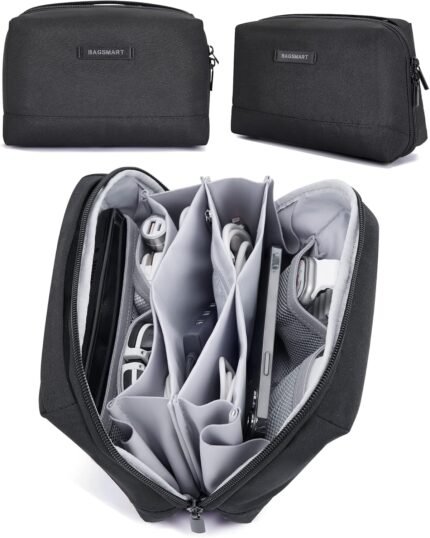 BAGSMART Electronic Travel Case, Tech Pouch, Cord Organizer for Phone, Power Bank, SD Card (Black)