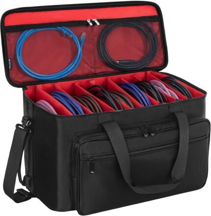 AKOZLIN Large Travel Gig Band Cable File Bag With Detachable Dividers DJ Cord Organizer Case for DJ Gear Sound Instrument and Musician Accessories Red